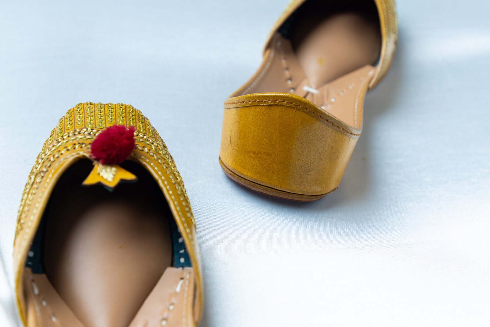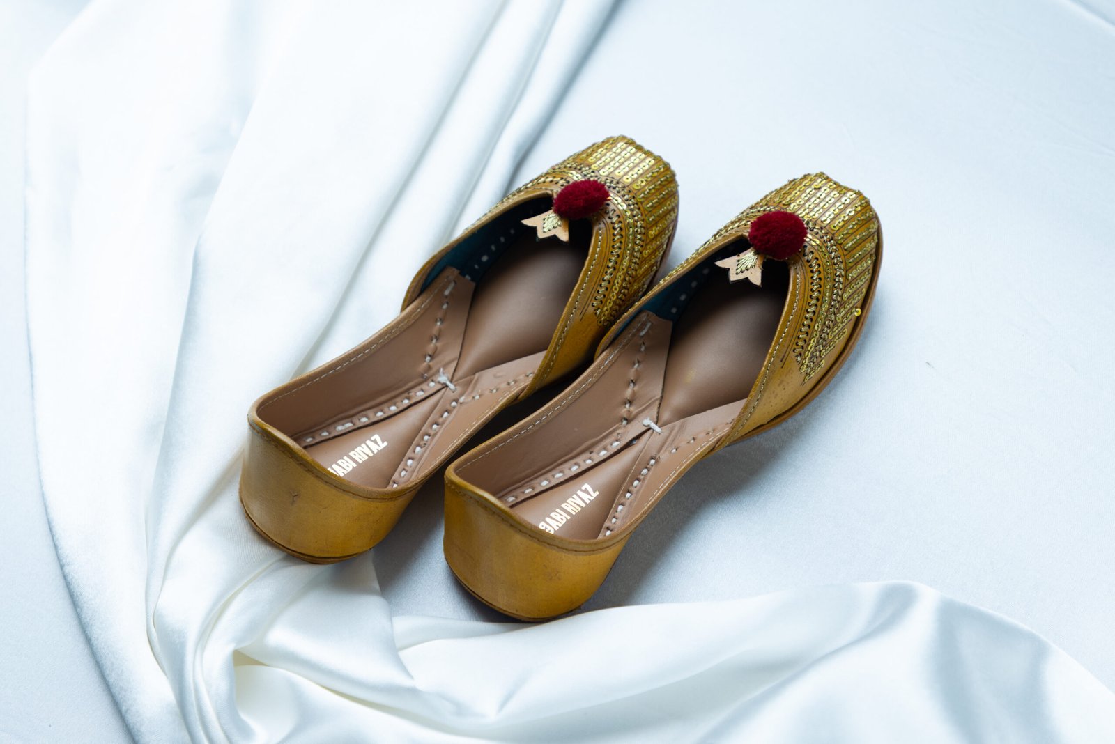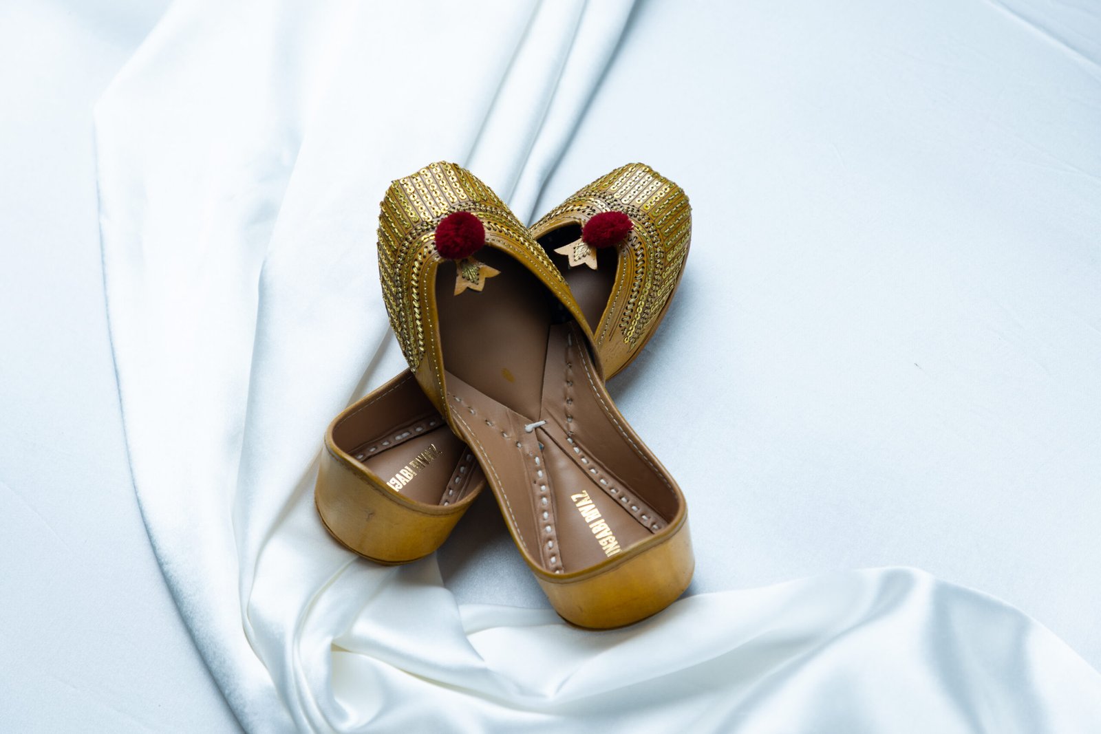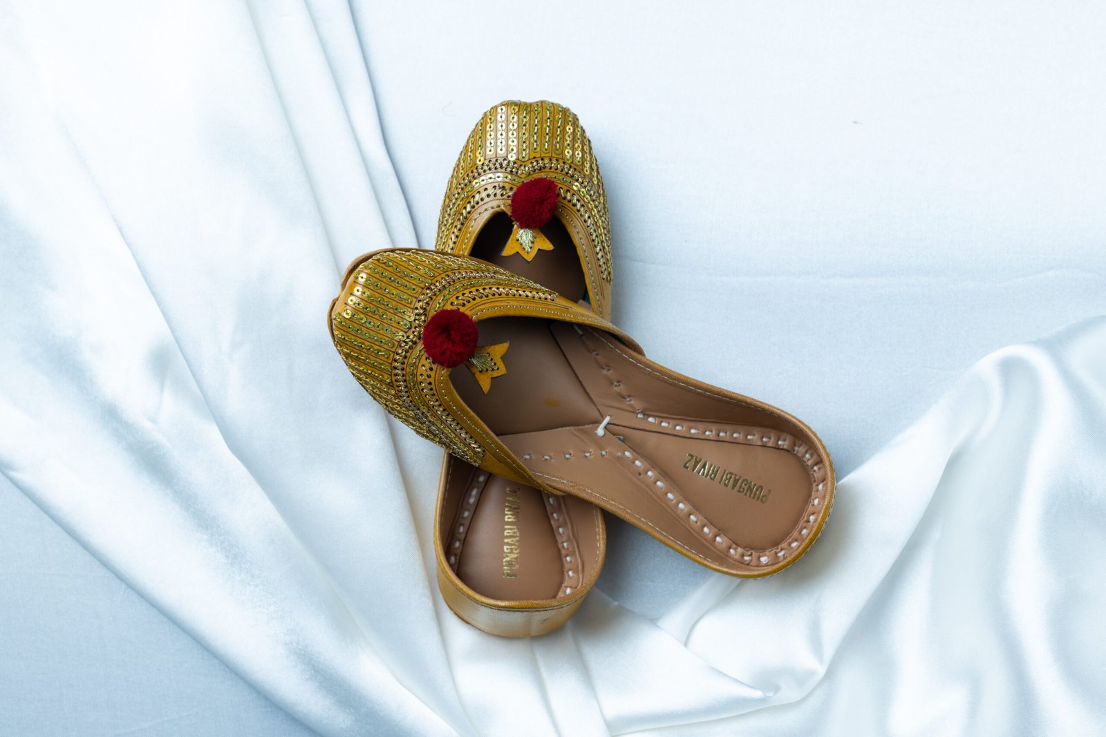 Radiating festive charm, these Punjabi juttis feature vibrant handcrafted detailing finished with a playful pom-pom accent.Bold yet elegant, this pair is perfect for celebrations, festive gatherings, and occasions where tradition meets joyful style.
