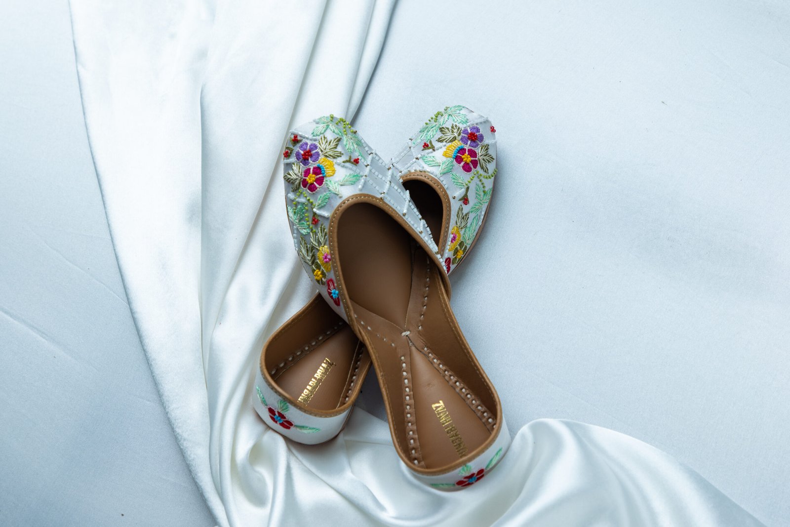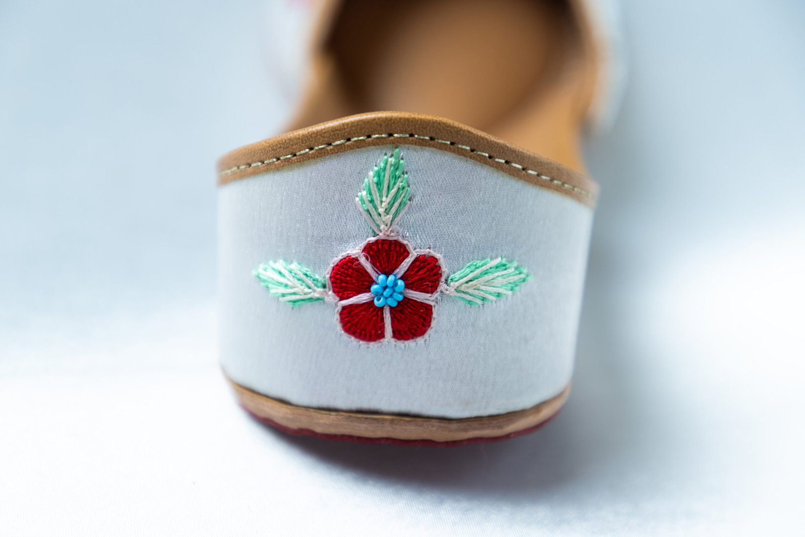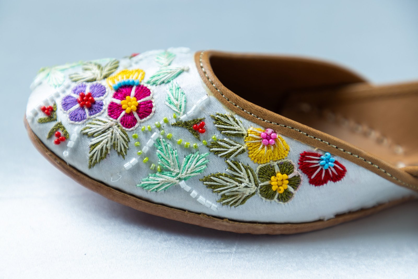 Delicately crafted on a soft ivory base with vibrant handcrafted floral embroidery, Meher reflects effortless grace and timeless Punjabi charm. Light, elegant, and versatile, this pair is designed for women who love subtle colour with everyday comfort — perfect for festive moments as well as graceful daily wear.
