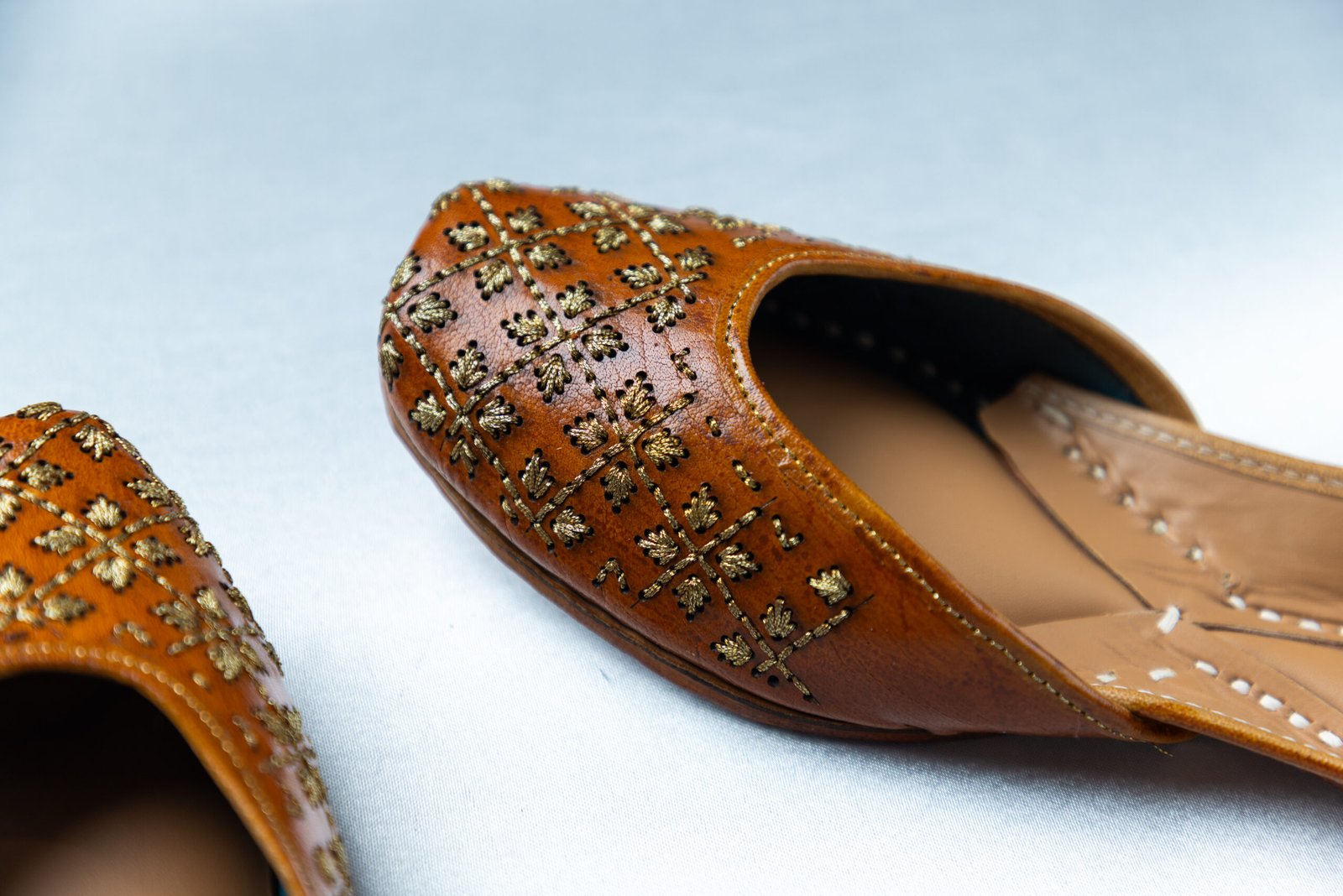 Crafted in warm tan faux leather with delicate all-over handcrafted embroidery, Roop juttis reflect understated elegance rooted in everyday tradition. Designed for effortless daily styling, this pair brings comfort, simplicity, and timeless Punjabi charm together.
